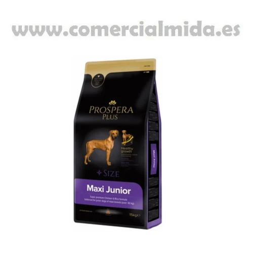 Prospera Plus Maxi Junior es un pienso de específico para perros de razas grandes, con proteínas de fácil digestión y alta calidad para ayudar a crecer a tu joven mascota cubriendo todas las necesidades nutricionales del crecimiento. Los cachorros tienen el estómago más sensible al principio de su vida, por ello debemos de darle una alimentación que cuide su estómago. Una combinación de proteínas y grasas correctamente equilibradas para el crecimiento lento y que requiere menos energía que los perros más pequeños. El nivel controlado de grasa y proteína previene el excesivo aumento de peso, con el consecuente problema para los huesos y articulaciones, a la vez que le ayuda a mantener una forma física adecuada. Además, las croquetas grandes son fácilmente masticables y tienen el tamaño adecuado para las fuertes mandíbulas de los perros junior y favorece la masticación del pienso.