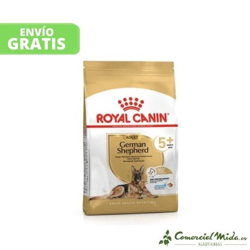 La fórmula nutricional de German Shepherd 5+ de Royal Canin está equilibrada para ayudar a mantener el sistema digestivo que es muy sensible en este tipo de perros. Las proteínas altamente digestibles junto con una selección de fibras y prebióticos favorecen una óptima salud digestiva y una flora intestinal equilibrada. Además el tamaño, la textura y la forma de la croqueta está adaptada para la mandíbula de esta raza. Esta croqueta se puede reblandecer con agua caliente para que su administración sea más sencilla.