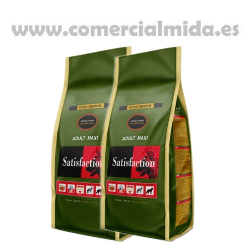 El pienso Satisfaction Adult Maxi es un alimento de mantenimiento completo de perros adultos (de 2-7 años) de razas grandes, superior a 25 kg en edad adulta. Este pienso sigue las recomendaciones de los expertos e incluye ingredientes como pollo fresco y arroz para una dieta sana y un perfecto funcionamiento del organismo. Además, gracias a sus proteínas y energía, la estructura ósea y muscular permanece resistente.
