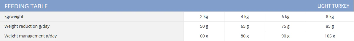Voedingstabel Profine Light Turkey: