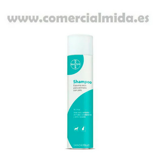 Bayer Sano y Bello Champú Espuma Seca es una espuma limpiadora en spray cuya fórmula permite lavar a perros y gatos sin necesidad de agua. Ideal para aquellos peludines que tienen miedo al agua o que todavía no deben lavarse como los cachorros. Los componentes de esta espuma eliminan los malos olores y la suciedad. En los lavados convencionales, la piel y el pelo pueden verse afectados. Es por esto, que es recomendado no lavar su mascota con mucha frecuencia y utilice productos exclusivos para mascotas.
