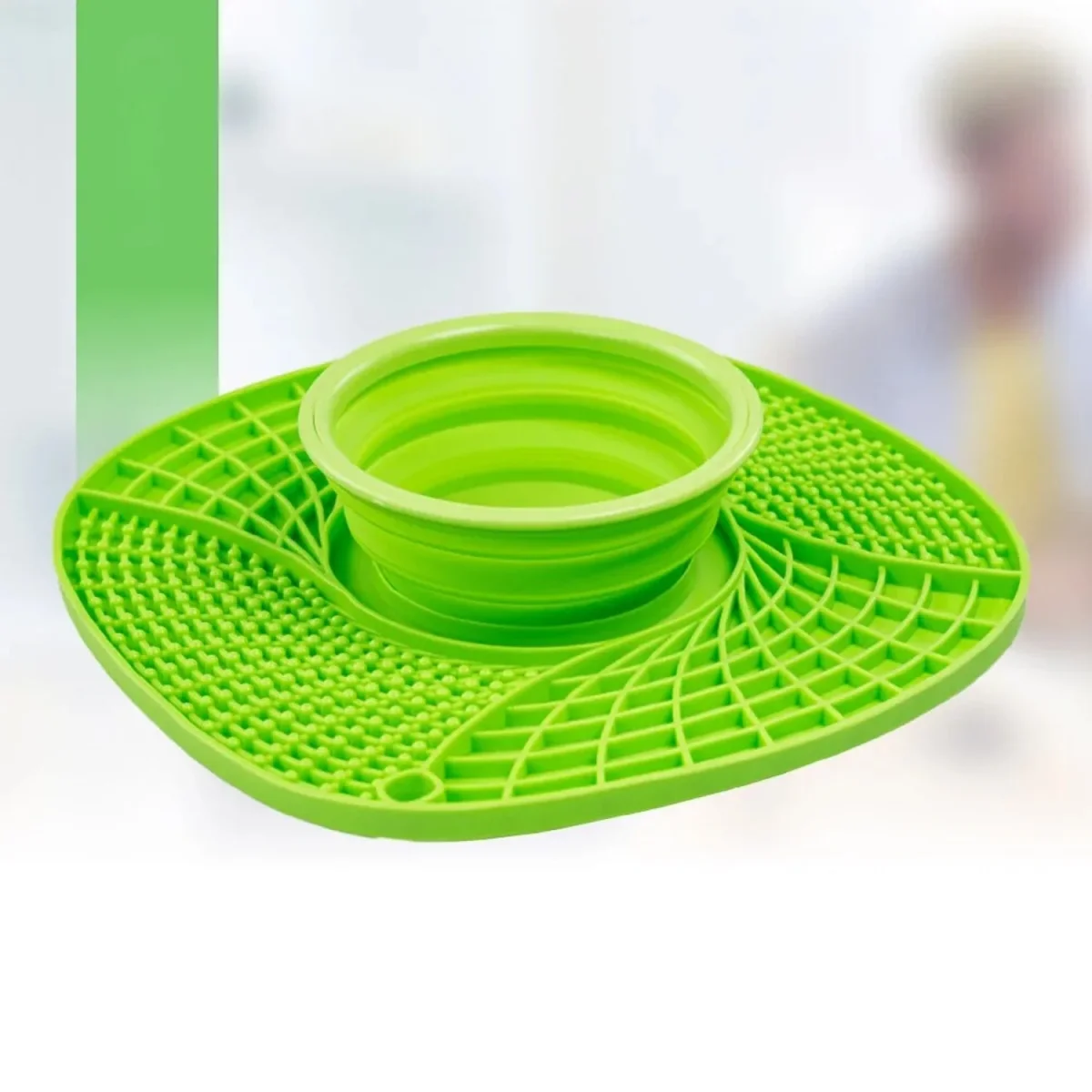 Transformeer de maaltijd van je hond of kat met de Siliconen Anti-Schrok Mat met Kom! Deze innovatieve siliconen likmat is ontworpen om het eten van je harige vriend te vertragen, wat een gezondere spijsvertering bevordert en het risico op verslikken vermindert. Door te stimuleren tot likken en knabbelen, houdt het je hond betrokken en minimaliseert het rommel. Zeg vaarwel tegen verspreide brokjes en hallo tegen een schone, stressvrije eetervaring!