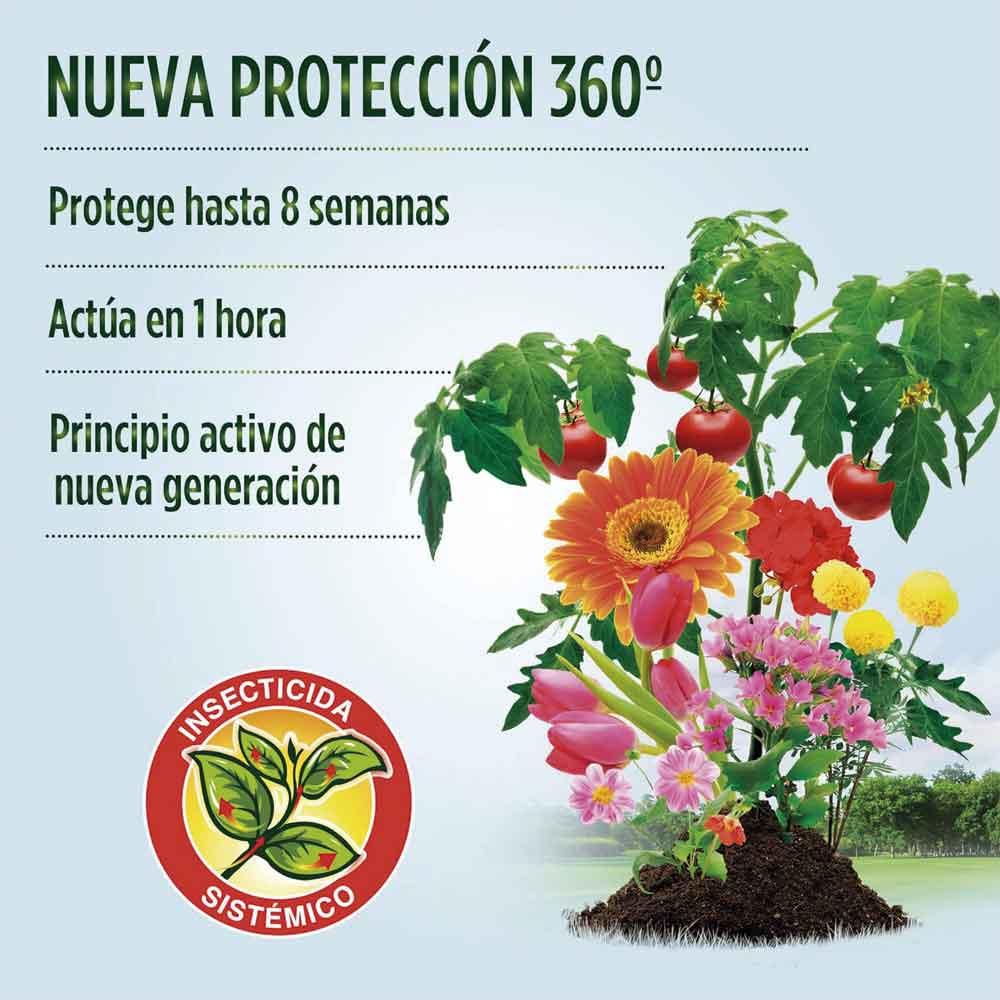 Protege las plantas contra futuras infestaciones durante 8 semanas. Actúa por contacto e ingestión para una acción efectiva. Formulación profesional de larga duración. Ideal para plantas ornamentales y con flores.