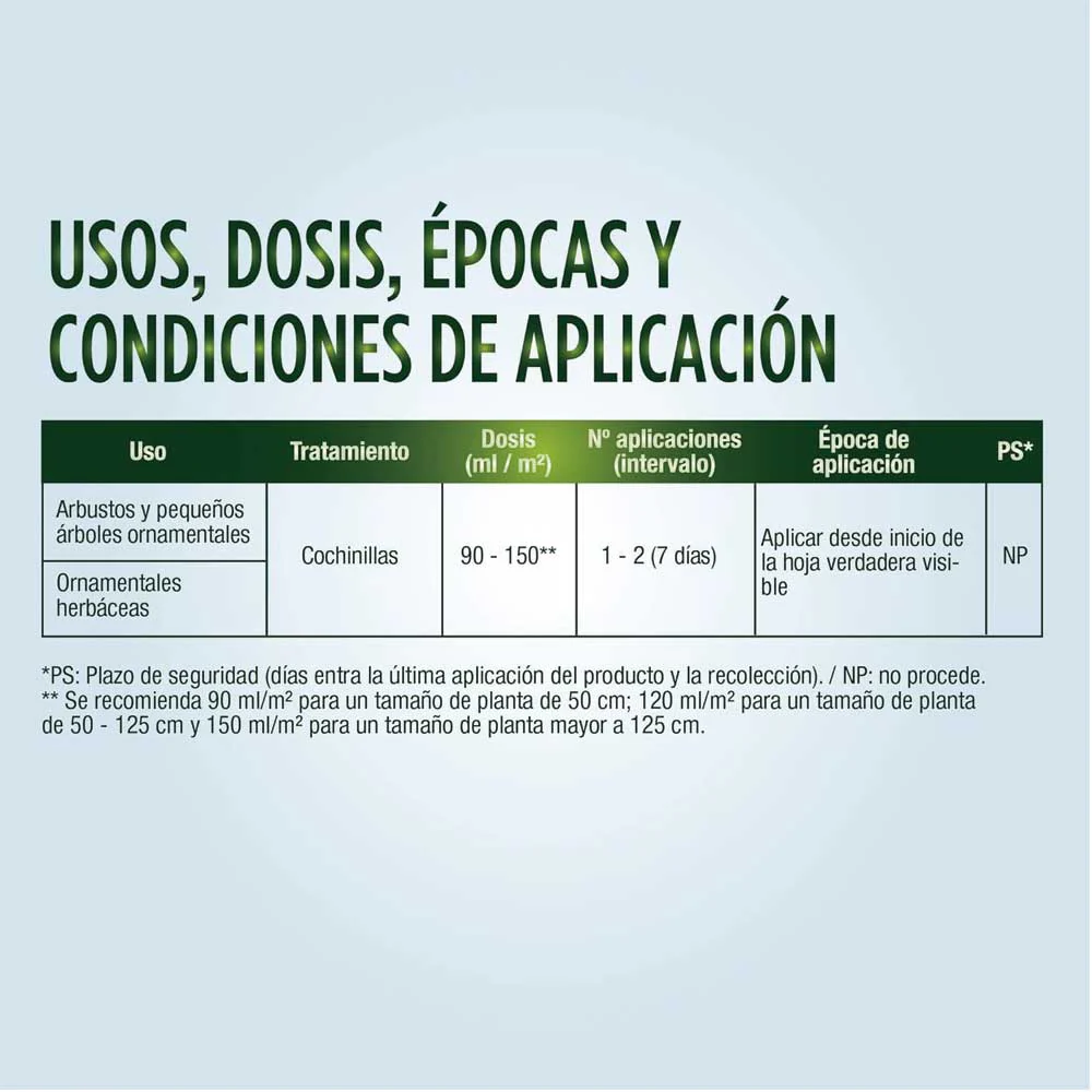 El principio activo es absorbido por la planta, lo que significa que resiste el riego y la lluvia, manteniendo a tus plantas seguras incluso después del tratamiento. Con hasta 8 semanas de protección continua, este producto es el aliado ideal para mantener tus plantas libres de cochinillas.