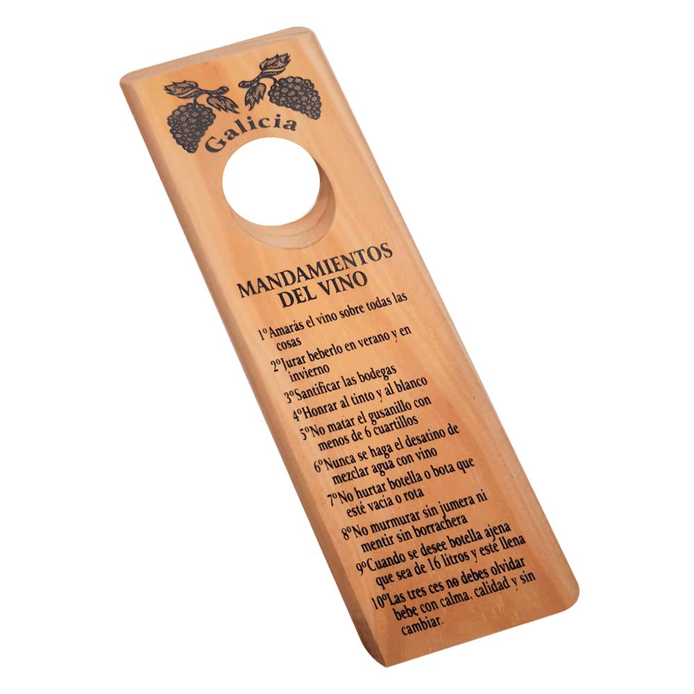 Soporte de botellas de Vino con los 10 Mandamientos de Galicia