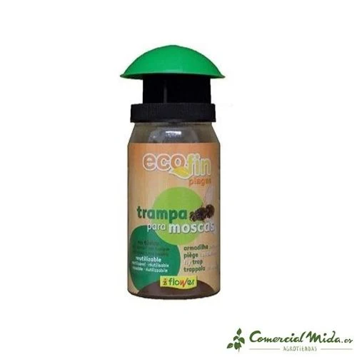 Trampa que contiene un cebo atrayente específico (libre de pesticidas) para moscas, diseñada para la captura de estos molestos insectos. No tóxico y reutilizable.
