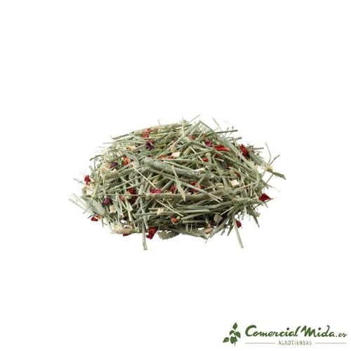 Este heno es la base esencial para una dieta completa en los roedores, además de que tiene un alto contenido en fibra bruta, garantizando así que estos pequeños animales tengan una buena y ligera digestión, y unos dientes más sanos. A mayores, el alto contenido en vitamina C mejora su sistema inmunológico.