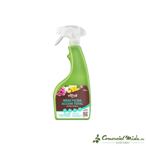 El insecticida de acción total está indicado para tratar todo tipo de plagas. Entre las plagas que puede tratar se encuentran los ácaros, los pulgones, las cochinillas o la mosca blanca y es especialmente eficaz en plantas y arbustos ornamentales como rosales y geranios.