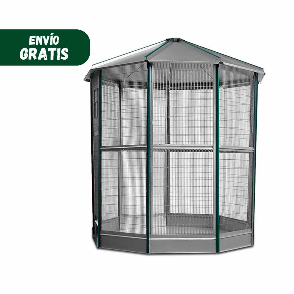 Los voladeros de Gómez y Crespo permiten proporcionar y mantener el bienestar de las aves en su día a día. Existen diferentes gamas de pajareras: con 6, 9 o 12 lados. Aquí te presentamos una selección de los accesorios indispensables para el correcto y completo montaje de la voladera que más se ajuste a tus necesidades y las de tus mascotas. El montaje, mediante paneles, se completa con piezas como la base para el voladero de 6 lados, tupida y con altura para evitar la entrada de animales peligrosos que puedan perturbar la presencia de tus pájaros, panel liso, panel con ventana y con puerta, el panel con puerta se trata de un panel en dos partes, la inferior se levanta para permitir el acceso al interior del voladero, perfiles de techos… Todos ellos ajustables a las estructuras de 6, 9 o 12 lados. Todos los elementos están diseñados sobre materiales cromados que evitan la corrosión y oxidación, favoreciendo la dureza, calidad y durabilidad. Los perfiles y el techo están pintados en color verde y los paneles blancos entonan muy bien con el entorno al aire libre.
