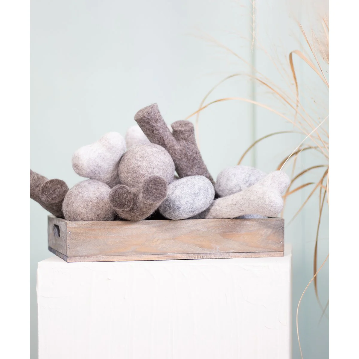 Natuurlijk wolvilt heeft een onweerstaanbare geur voor honden. Daarom zijn onze speeltjes perfect voor zoekspelletjes, apporteerspelletjes, zacht kauwen of om lekker mee rond te lopen. Voor harde kauwers of honden die hun speelgoed graag stevig aanpakken, is dit speelgoed minder geschikt.